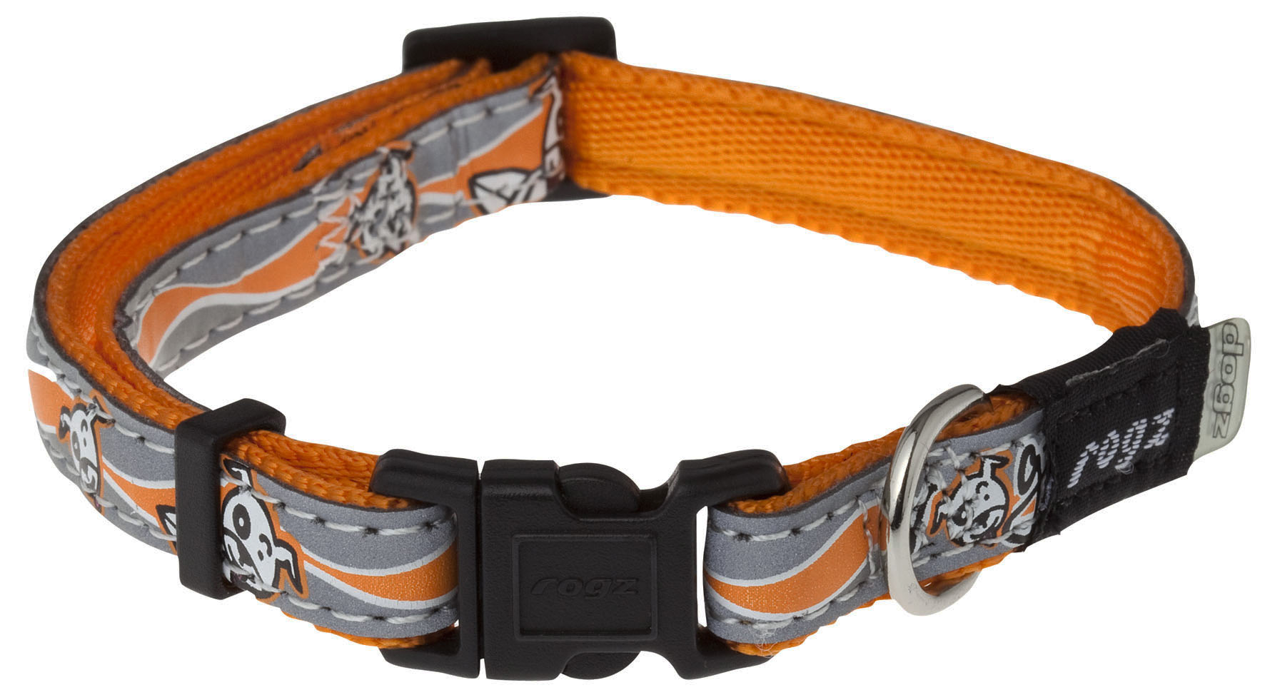 Rogz Reflective Mars Dog Collar, Orange Surf Saint Patch Design