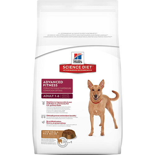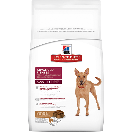 Hill’s Science Diet, Canine Adulto, Advance Fitness, Cordero y Arroz ha sido formulado para mantener la masa muscular y facilitar la digestión.
